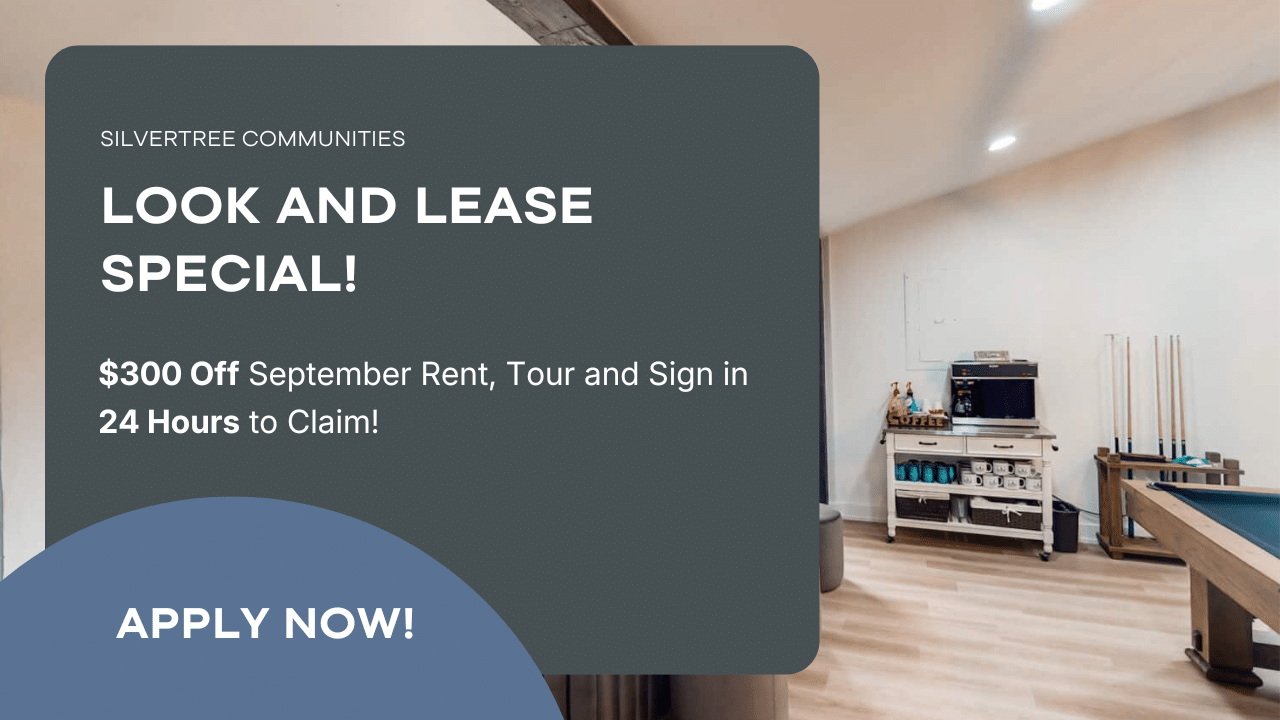 Look and Lease Special! $300 Off in September. Sign Within 24 Hours To Claim The Offer.